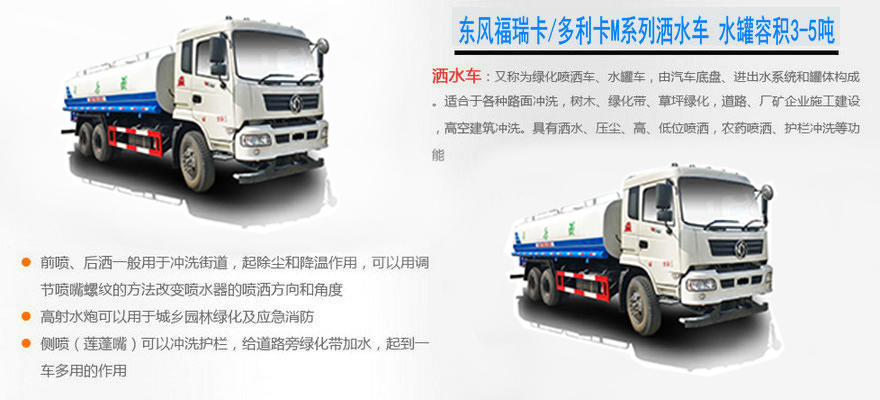 東風(fēng)小多利卡灑水車:3噸-5噸灑水車用戶最多選擇之一,東風(fēng)多利卡底盤,是東風(fēng)小霸王、福瑞卡的升級車型。 底盤配置:常用發(fā)動機為朝柴95馬力、錫柴95馬力、四達95馬力,7.00-16輪胎,駕駛室前翻。