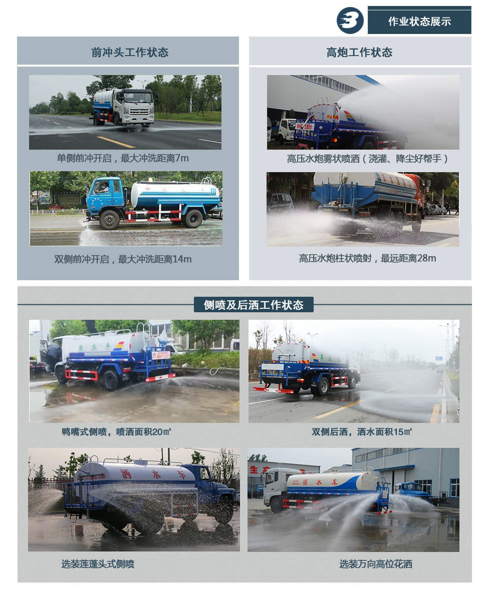 標準: 泵性能符合機械部標準《灑水車技術條件》QC/T29114-93中對泵規(guī)定的要求。沖水距離在20米以上,楊程30米以上,每分鐘1000轉,自吸高度6米。