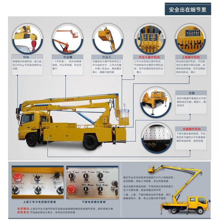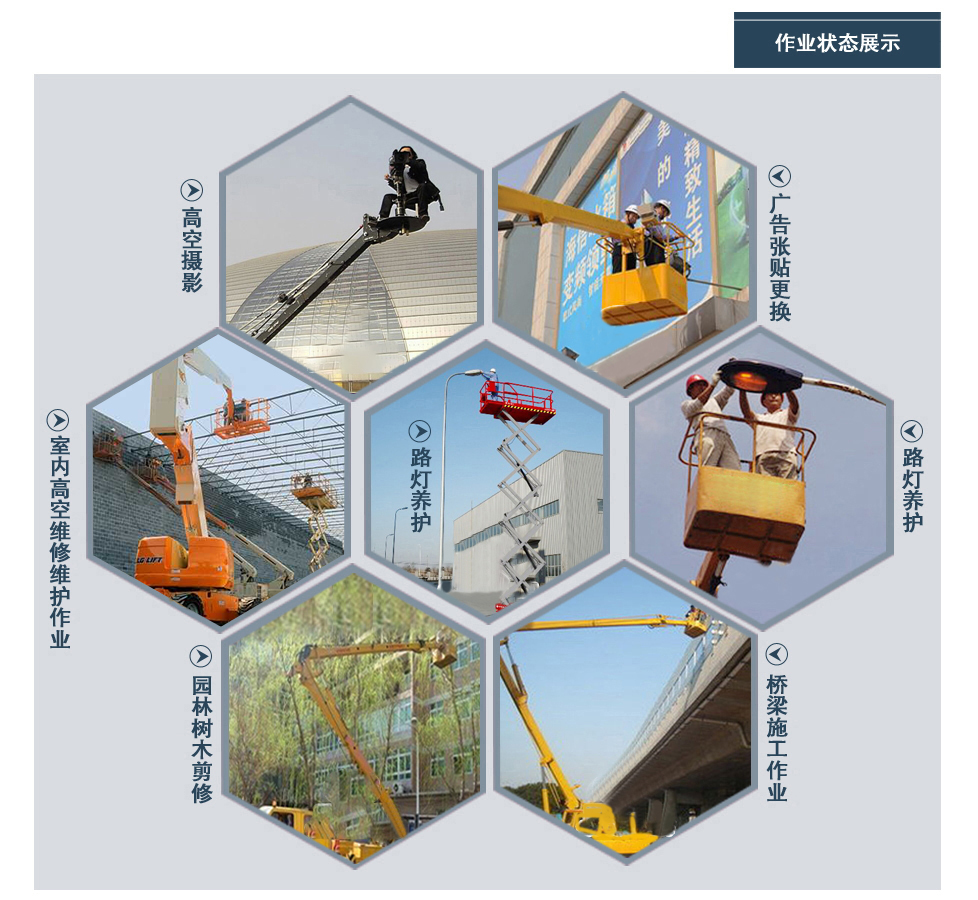 標(biāo)準: 高空作業(yè)車:產(chǎn)品結(jié)構(gòu)簡單、堅固耐用、操作方便可靠。獨特設(shè)計的全回轉(zhuǎn)三折臂液壓操控系統(tǒng)使工作人員在高空作業(yè)時操作更平穩(wěn),能安全有效的將工作人員送到8-24進行高空作業(yè)或者進行維修、安裝、清洗、攝影、造船、化工、電力、剪枝、更換路燈及其他工程搶修作業(yè)。該車電動操作系統(tǒng)均采用防水開關(guān),避免了開關(guān)易進水,銹蝕漏電的問題,工作斗采用管狀工作斗,造型美觀,在工作斗和轉(zhuǎn)臺實行雙位置操作,使用方便,維修簡便,安全可靠。