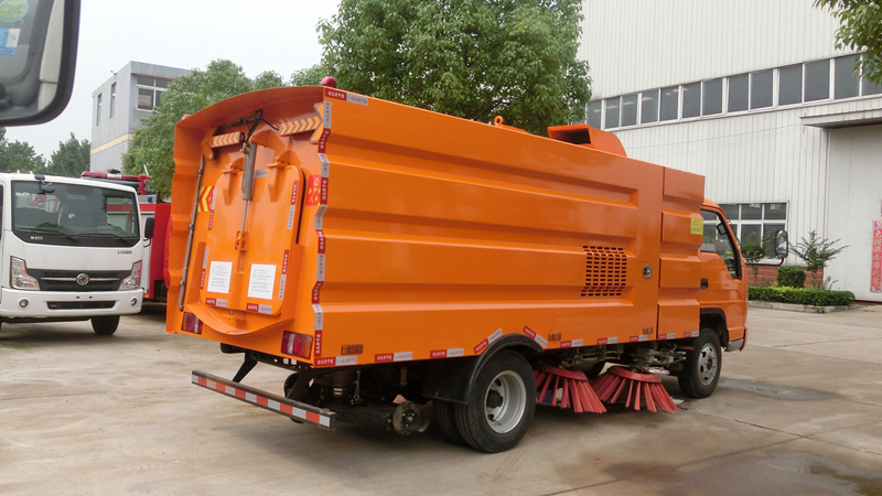 產(chǎn)品功能特點1、采用吸掃結(jié)合的方式收集垃圾,濕式除塵、電液控制,液壓傾翻卸料的作業(yè)方式對路面進行清掃作業(yè)。2、采用副發(fā)動機專門驅(qū)動風機和液壓系統(tǒng),保證行駛過程中能繼續(xù)工作,保證清掃過程的連續(xù)性。 3、采用“中置四盤刷+后置吸嘴”的結(jié)構布置,便于清掃裝置與吸嘴的調(diào)整和維護,轉(zhuǎn)場時整車通過性好。 4、副發(fā)動機與風機之間的傳動設置設有自動離合器,可保證副發(fā)動機空載起動和停機時與風機的自動脫離,降低對副發(fā)動機的沖擊,提高了副發(fā)動機的工作可靠性和使用壽命。 5、掃盤有遇障避讓保護功能和復位功能,遇到障礙物后回縮,越過障礙物后復位。 6、根據(jù)不同清掃工況,在不增加副機油門的情況下,實現(xiàn)掃盤高中低三檔調(diào)速,即能保證在各種污染狀況下都有良好的清掃效果,同時節(jié)省油耗以及刷毛的損耗。 7、采用可隨路面自動找平的全浮動式吸嘴,吸塵效果好,使用壽命長。 8、進口液壓閥組,能保證整車的液壓動作的穩(wěn)定性和流暢性。 9、進口液壓馬達,能保證掃盤的工作穩(wěn)定性,使用壽命長。 10、進口原料制成的外翻式吸塵管,有效防止吸塵管被劃破、凍裂,增加使用壽命。 11、精密無縫冷彎液壓油管,內(nèi)壁無氧化雜質(zhì),保證液壓油路清潔,不堵閥。 12、掃盤刷臂內(nèi)使用高性能工程塑料隔套,耐磨性好,免打黃油免維護,節(jié)省人力物力。 13、不銹鋼水箱、垃圾箱,可抗一般性腐蝕,增加箱體的使用壽命。 14、超寬后門且大于90度的開啟角度,更易于傾倒垃圾,清理垃圾箱。 15、垃圾箱傾翻角度大于48度,易于傾倒垃圾。 16、可加裝前沖、后灑、噴霧、自潔卷盤、作業(yè)監(jiān)控系統(tǒng)、輔助吸管裝置、推雪鏟等。