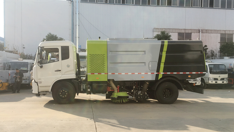 1、采用吸掃結合的方式收集垃圾,濕式除塵、電液控制,液壓傾翻卸料的作業(yè)方式對路面進行清掃作業(yè)。