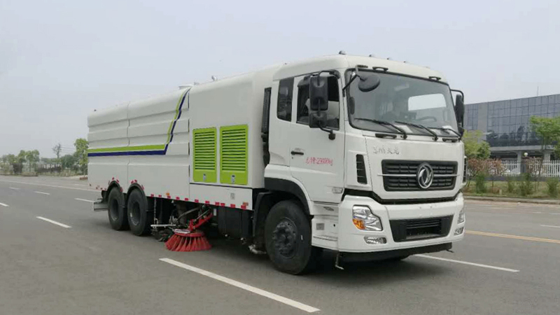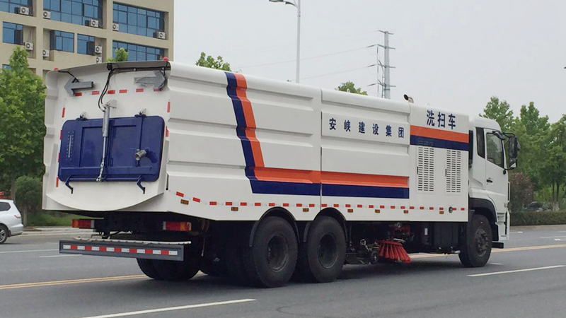 8)采用先掃,后沖刷,再吸收的工作方式,能將垃圾及污水一次清掃、沖刷、吸收干凈。路面作業(yè)后無塵土,無積水;