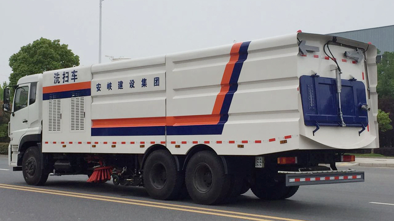 1)該車集掃路車、灑水車和高壓清洗車功能于一體,具備路面清掃、路面洗刷、高壓清洗、低壓沖洗、路緣石洗刷、垃圾收集、污水回收、噴霧降塵和道路隔離墻清洗、小廣告清洗等多種作業(yè)功能。
